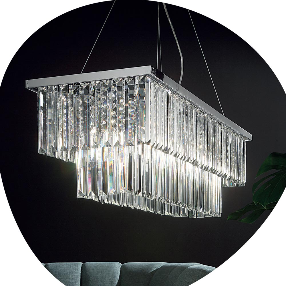 Acest candelabru pentru sufragerie este capabil să creeze atmosfere luxoase și importante datorită designului său prețios și luminos.