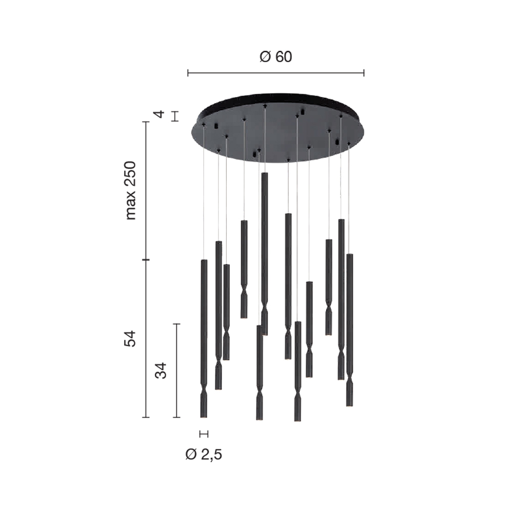 - 6 lumini mari: diametru 2,5 x inaltime 54cm