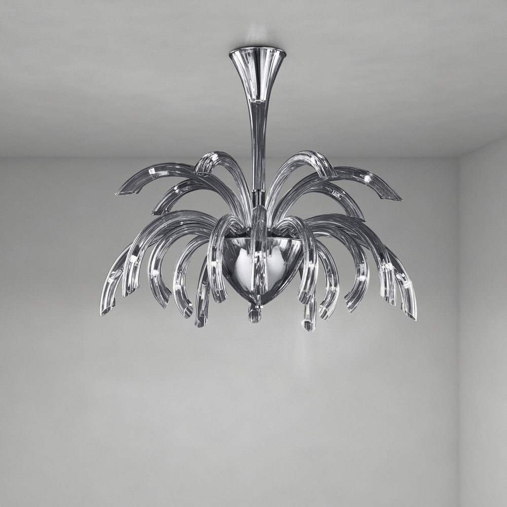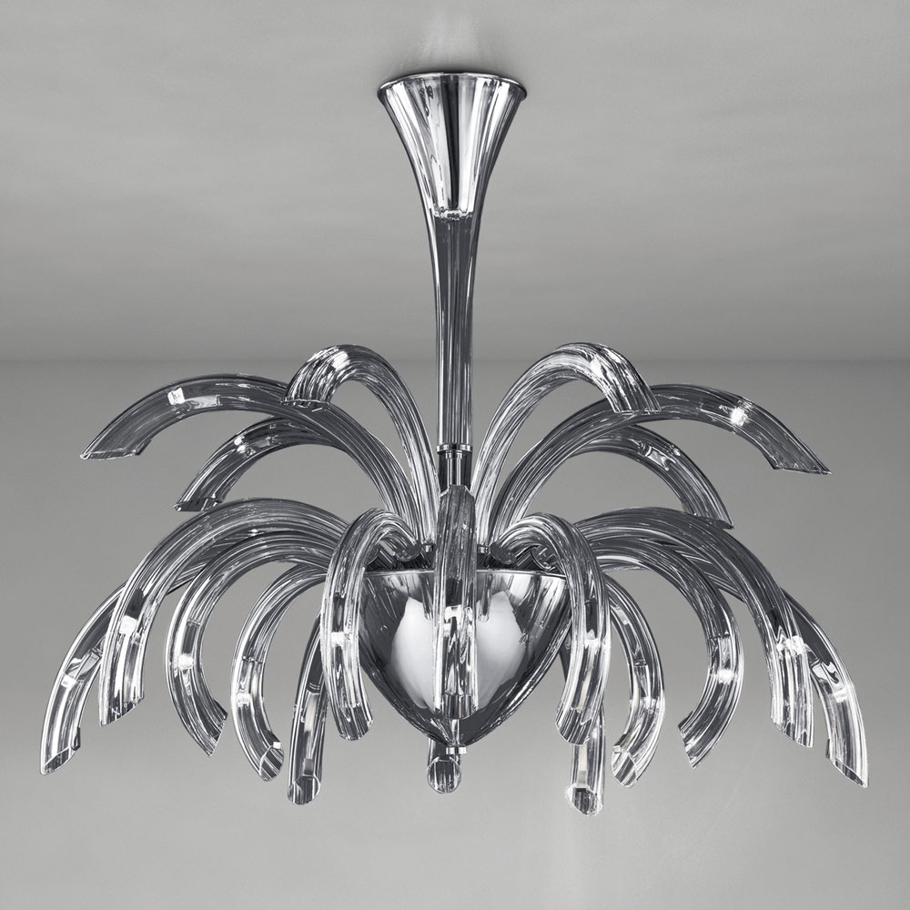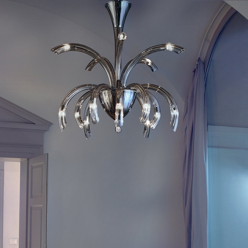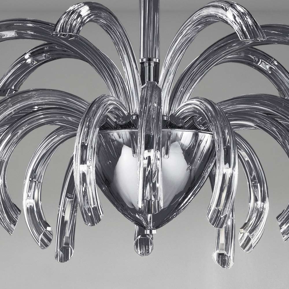Candelabru artizanal cu 15 lumini din sticla Venetia si metal Made in Italy.