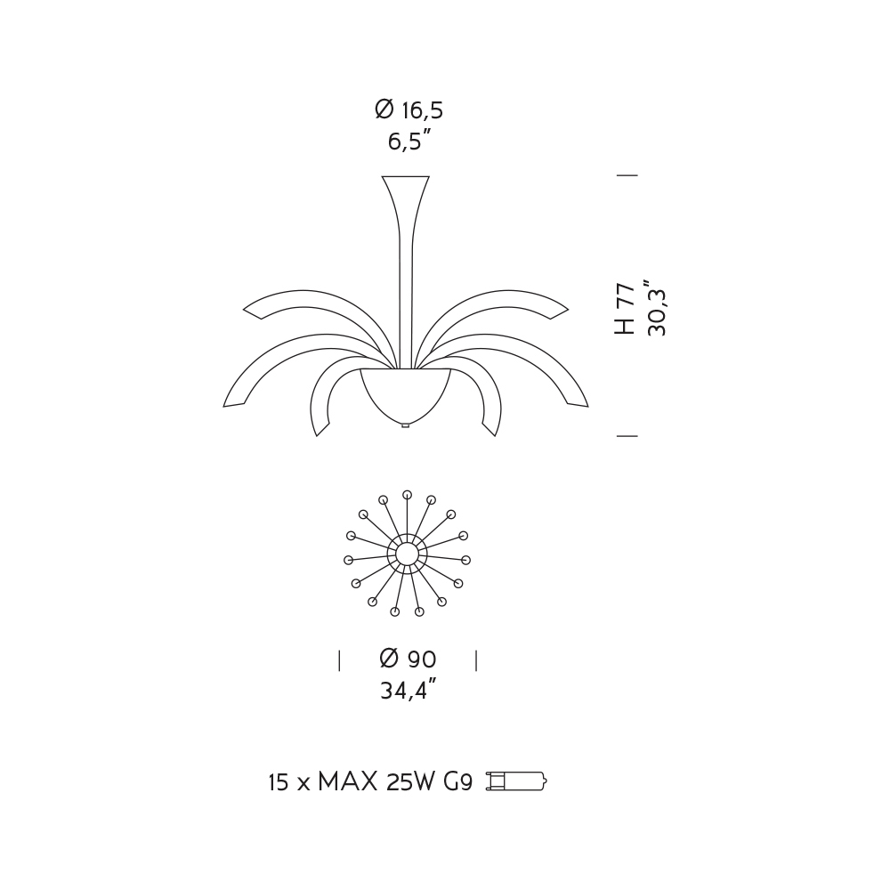 Becuri (nu sunt incluse) : 15 x MAX 25W G9