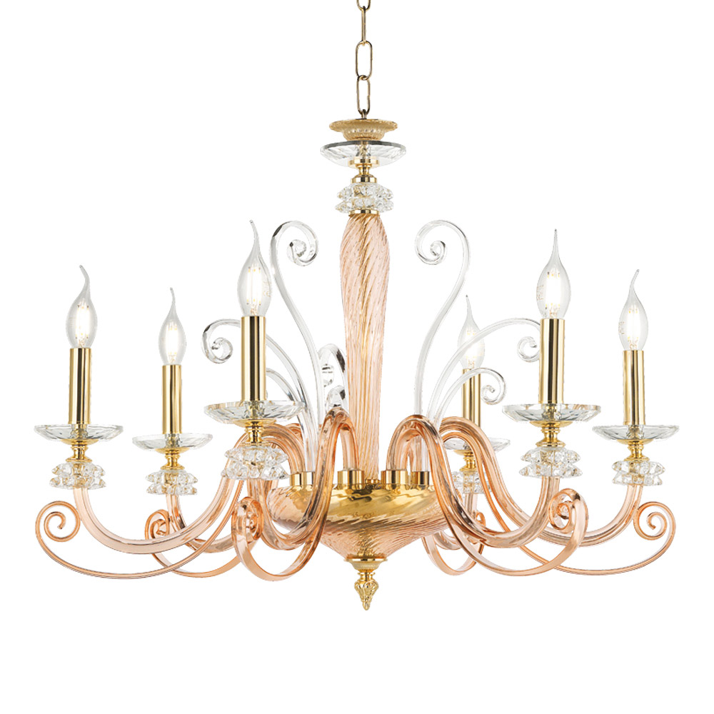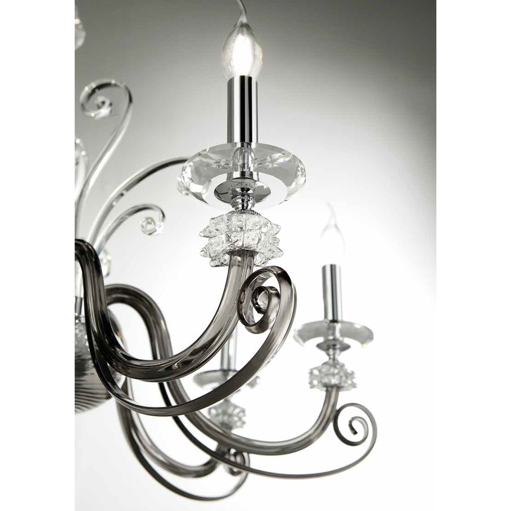 Candelabru cu 6 lumini realizat manual din sticla suflata si cristal optic, de lux fabricat in Italia.