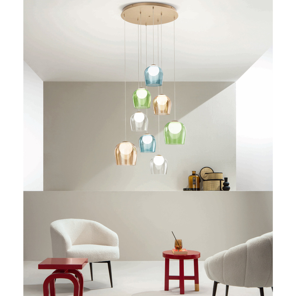 Candelabru cu lumina LED din metal vopsit cu abajur din sticla optional Made in Italy