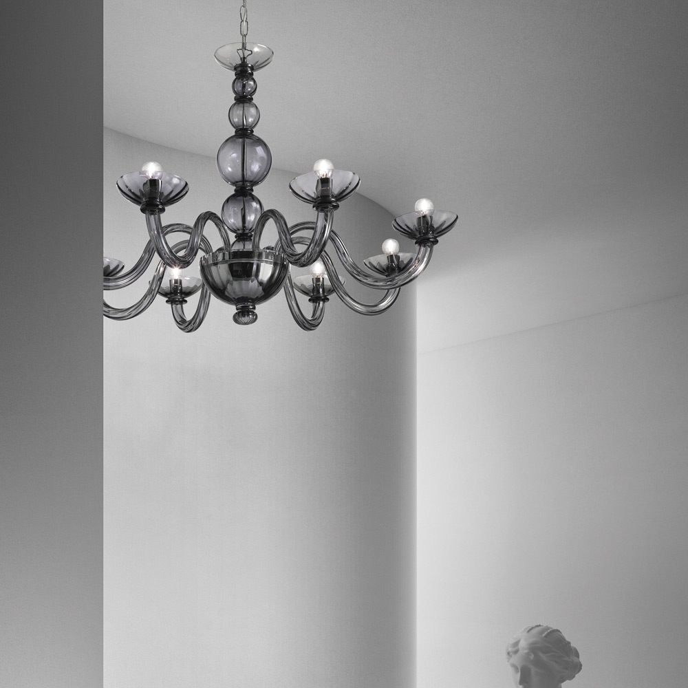 curbe rafinate care se adaptează perfect mediilor clasice dar în același timp și spațiilor cu stil contemporan. Elementul de tradiție este punctat de componentele sale minunate din sticlă suflată realizată în întregime manual, care este transformată pentru a se actualiza datorită culorilor la modă.