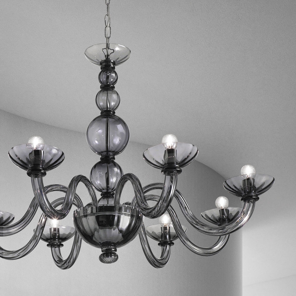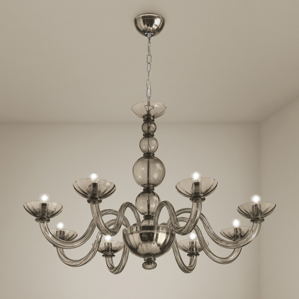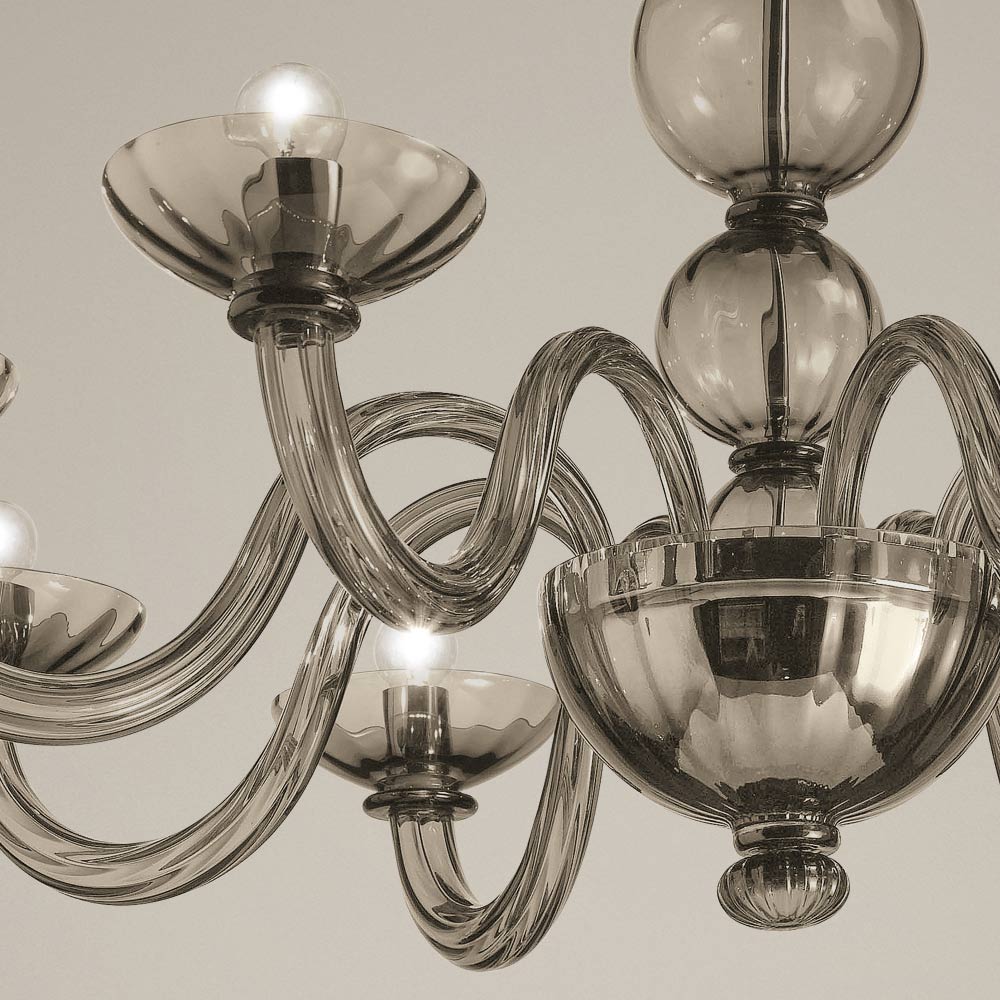 Candelabru cu 8 lumini din sticlă venețiană suflată manual, cu detalii