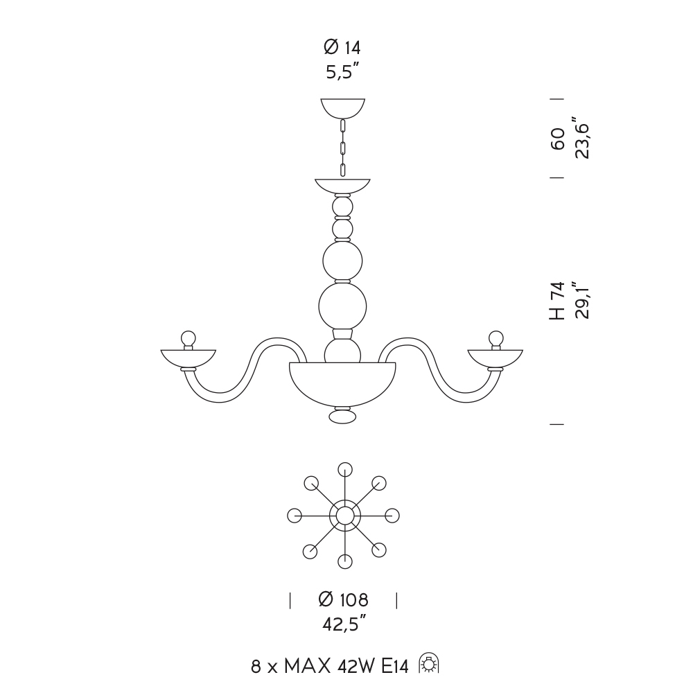 Becuri (nu sunt incluse) : 8 x MAX 42W E14