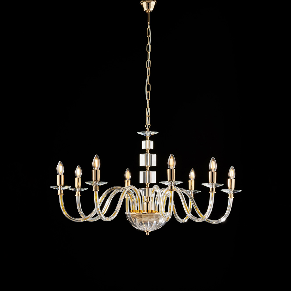 Finisajul Cristal/Auriu Lustruit sporește strălucirea candelabrului și evidențiază formele sale armonioase, făcându-l ideal pentru livinguri impunătoare , sufragerii elegante , saloane clasice , hoteluri de lux și medii contractuale de înaltă clasă . Fiecare detaliu vorbește despre excelența măiestriei Made in Italy .