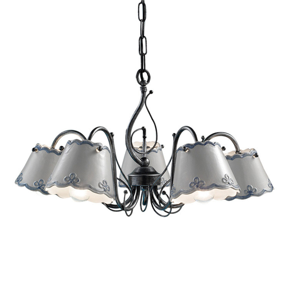 Candelabru living cu 3 sau 5 lumini realizat manual din metal si ceramica cu efect de broderie, realizat in Italia de Ferroluce.