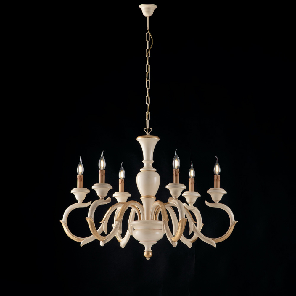 Eleganța atemporală și măiestria măiestriei se întâlnesc în acest candelabru clasic din lemn, fabricat în Italia , realizat cu grijă și atenție la detalii. Structura armonioasă, caracterizată de brațe sinuoase într-un stil tradițional , conferă încăperii o eleganță dramatică și rafinată.
