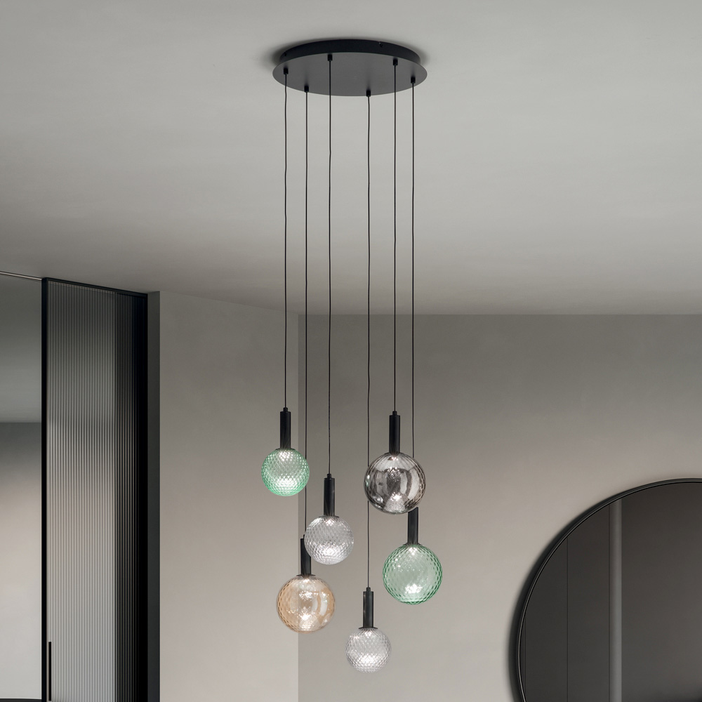 Perfectă deasupra unei mese sau ca punct focal într-o cameră de zi contemporană , fiecare sferă este atârnată cu precizie, creând o compoziție pe cât de artistică , pe atât de funcțională . Finisajele diferite în nuanțe de sticlă adaugă o notă de clasă și distincție oricărui spațiu, reflectând lumina într-un mod care atrage privirea și luminează camera.