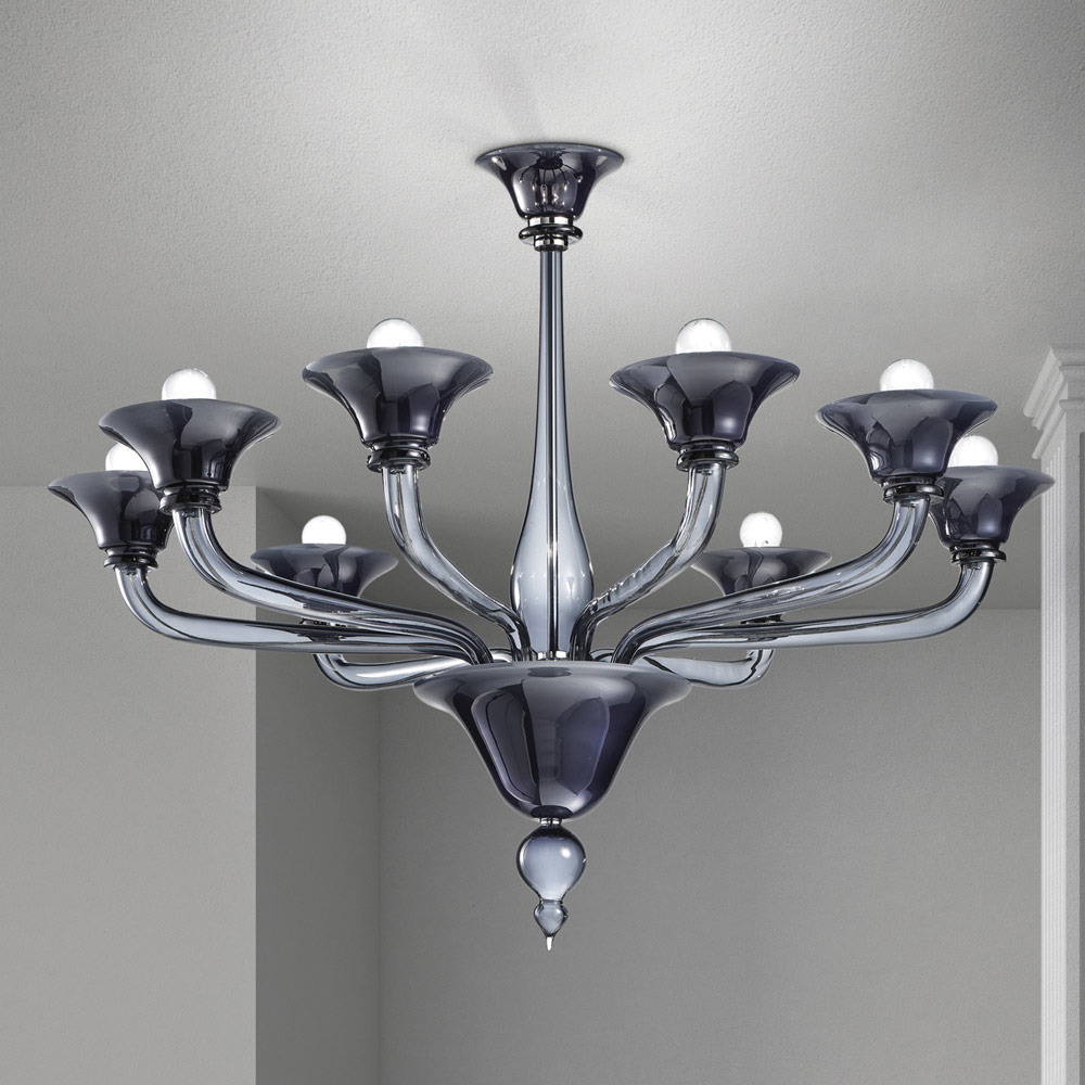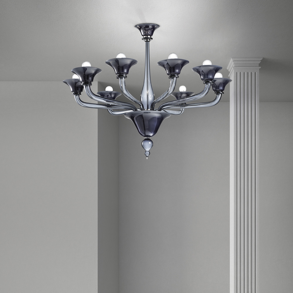 Candelabru cu 8 lumini din sticla Venetia si metal Made in Italy.