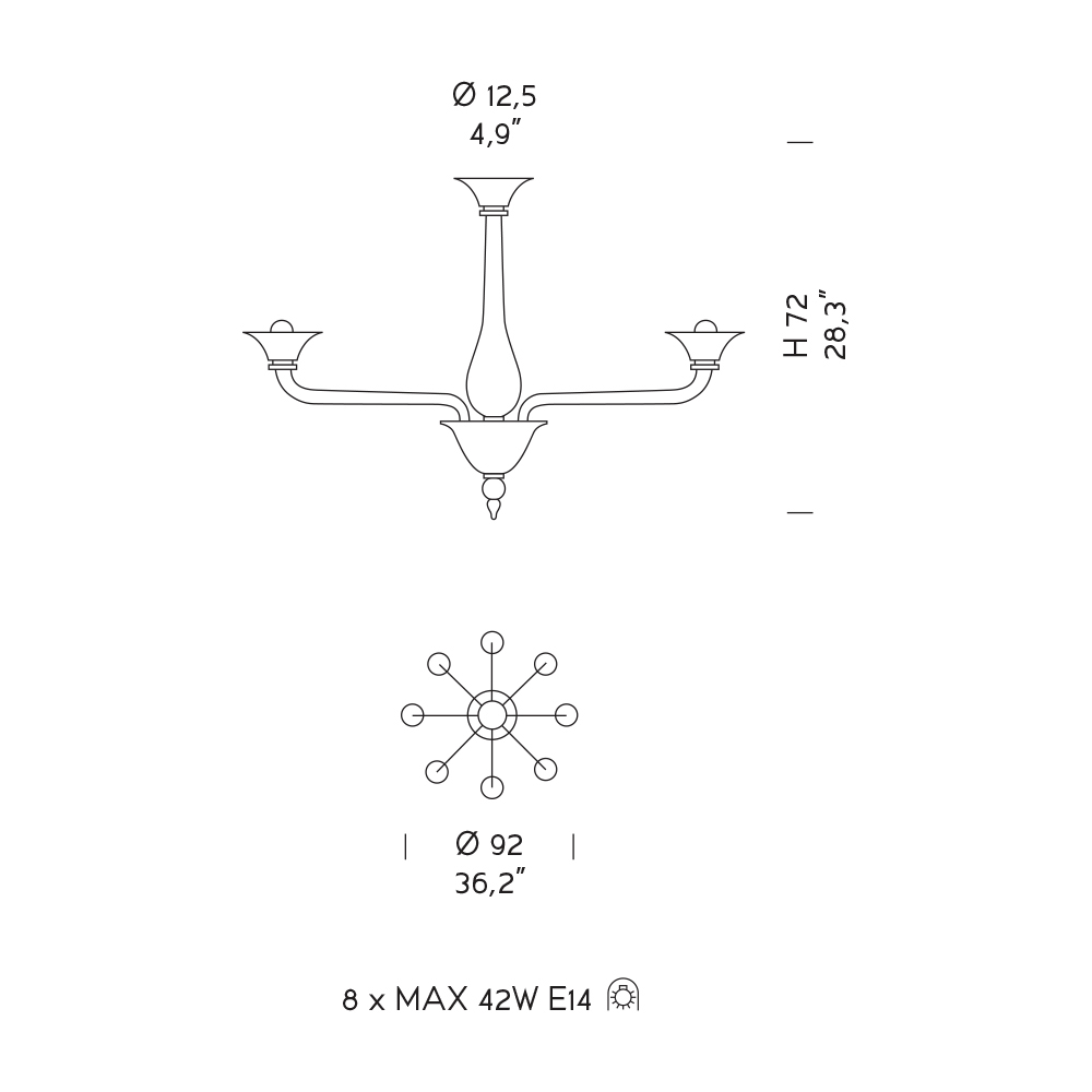 Becuri (nu sunt incluse) : 8 x MAX 42W E14