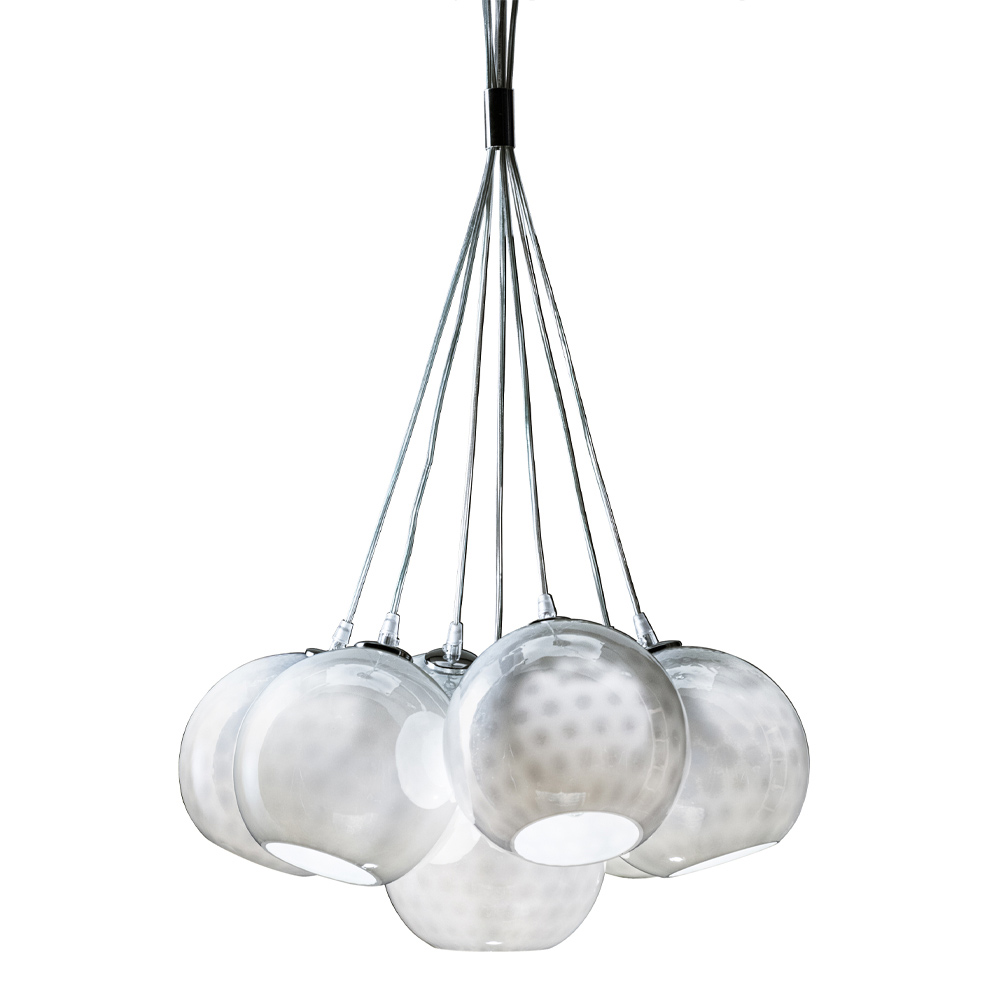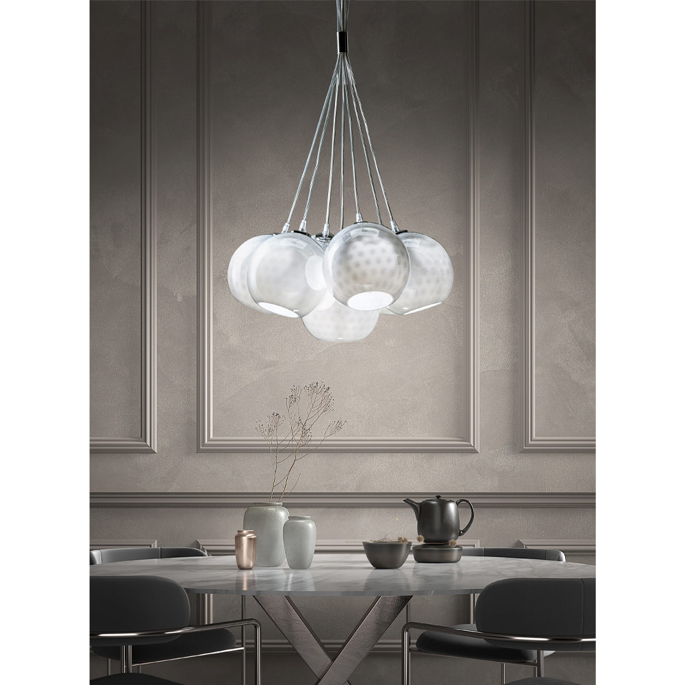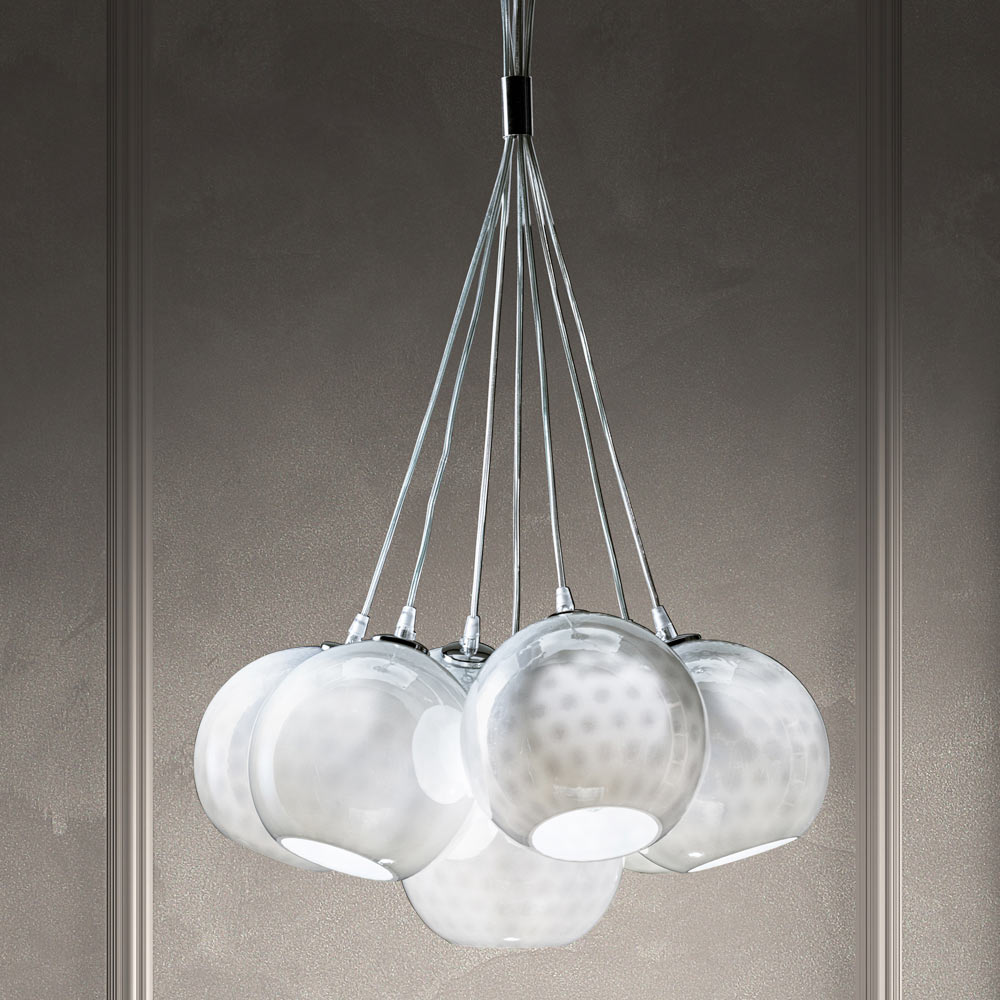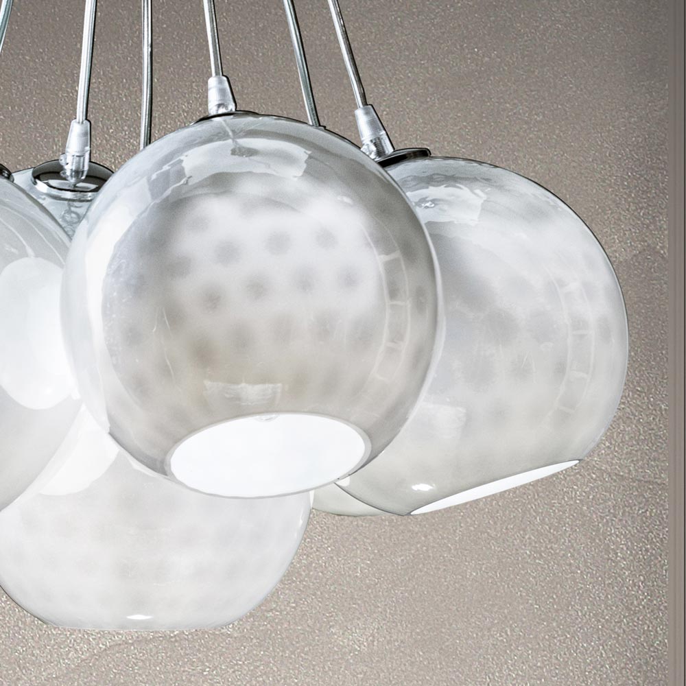 Candelabru cu 7 lumini din sticla suflata manual la Venetia cu tehnica Balloton.