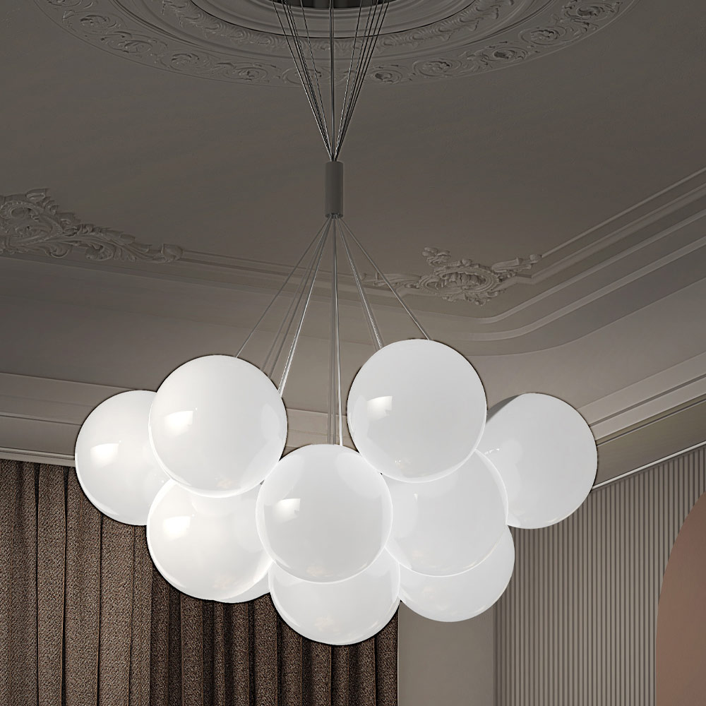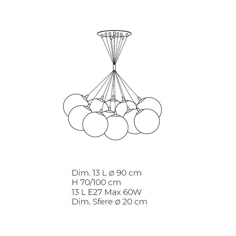 din sticlă suflată manual, ideală pentru umplerea și iluminarea spațiilor mari precum zonele de zi sau de mese, datorită unei