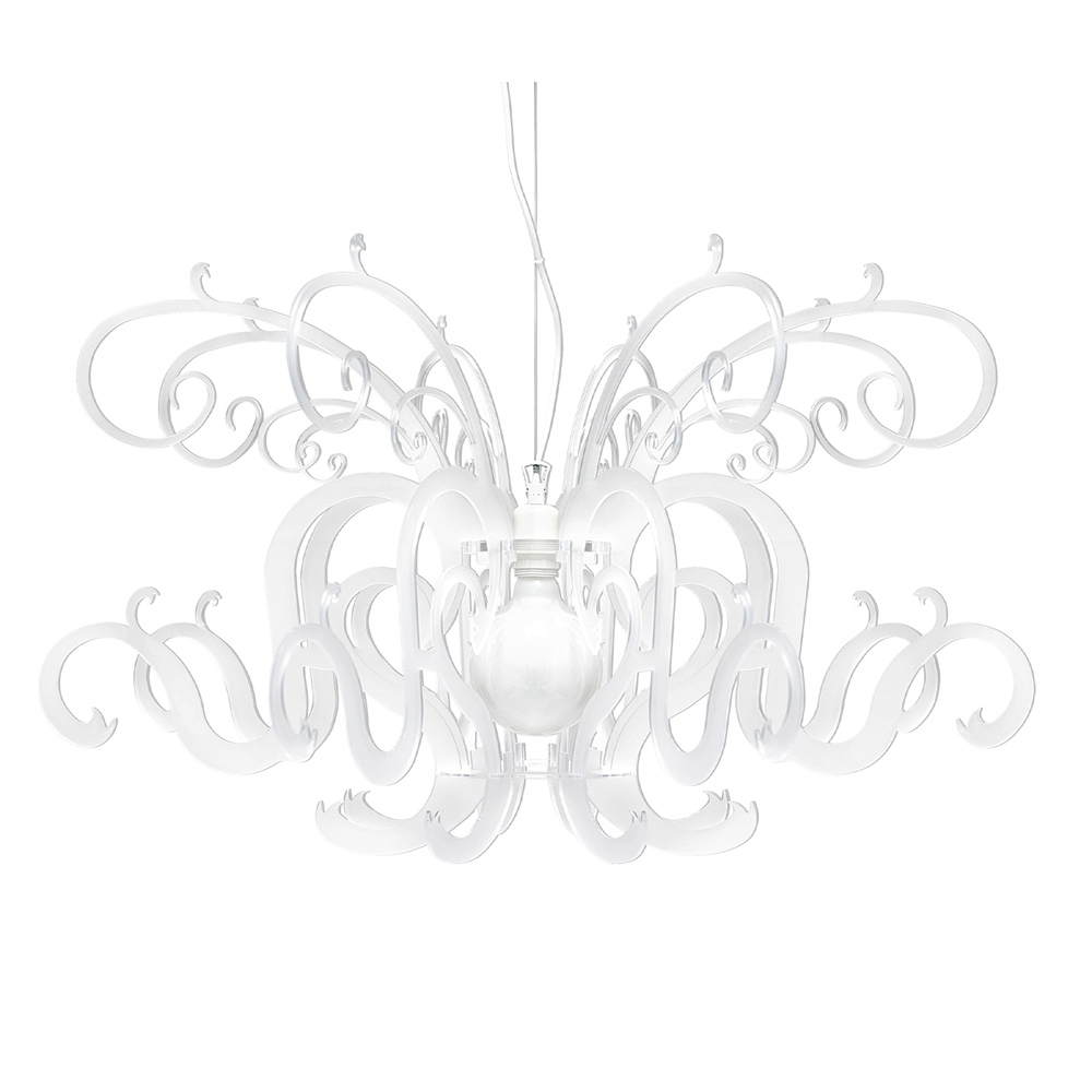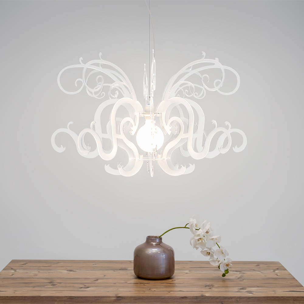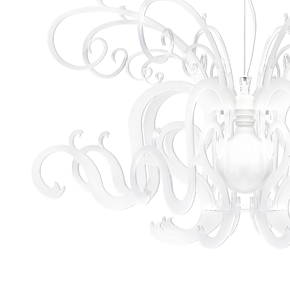 Lampă suspendată din plexiglas alb reciclabil fabricat în Italia.