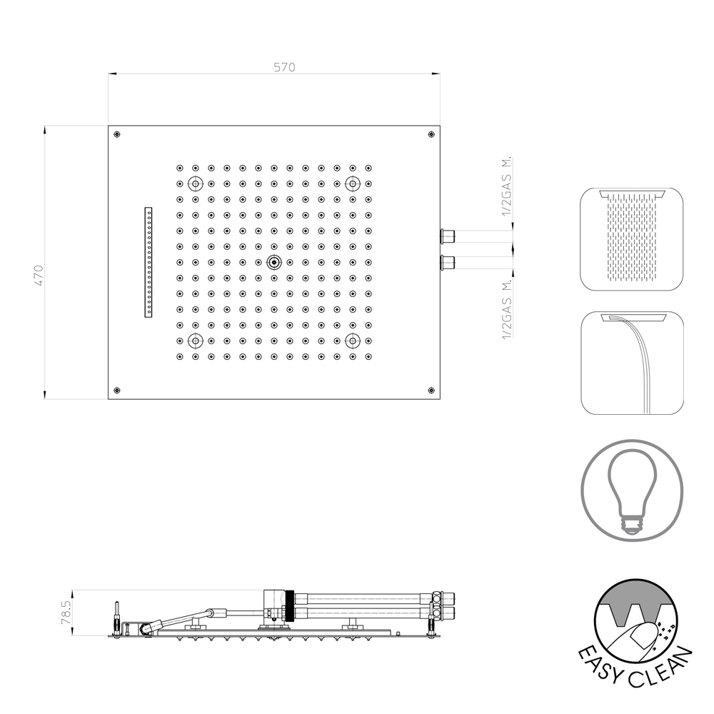 Cap de duș de tavan Dream cu două jeturi cu cromoterapie