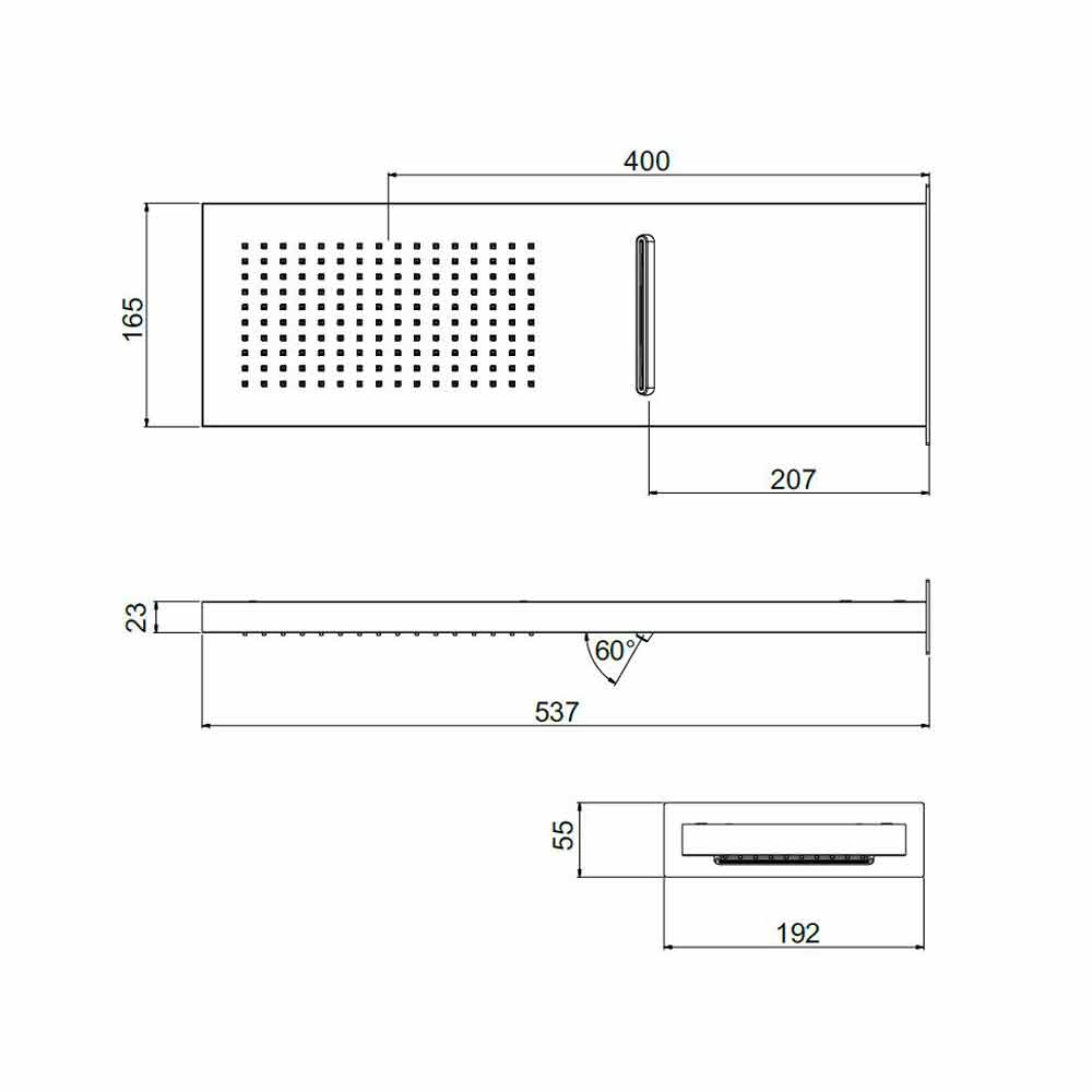 Cap de dus dreptunghiular din otel inoxidabil cu jet dublu Made in Italy.