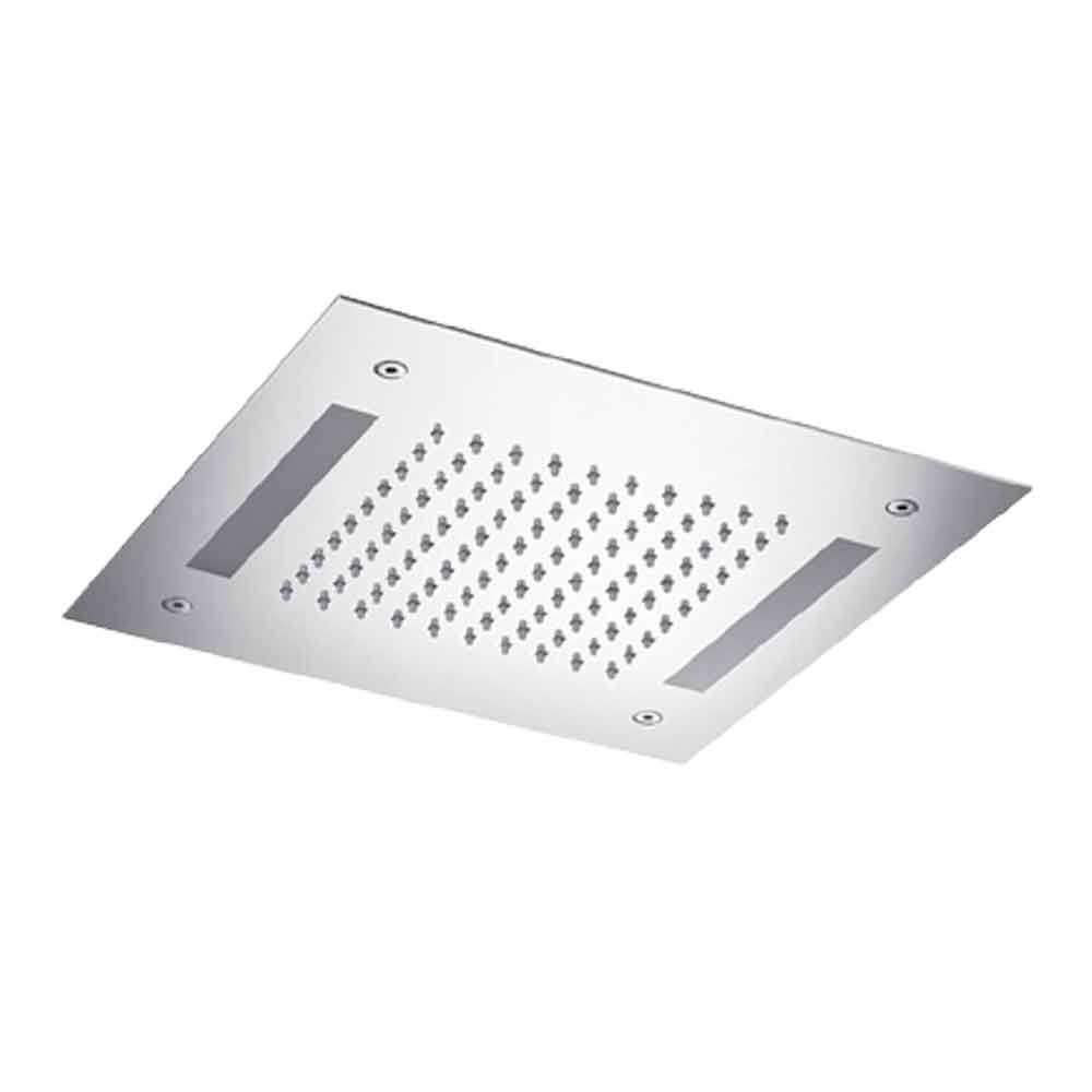 Cap de duș pătrat din oțel inoxidabil cu cromoterapie, articol fin Made in Italy.