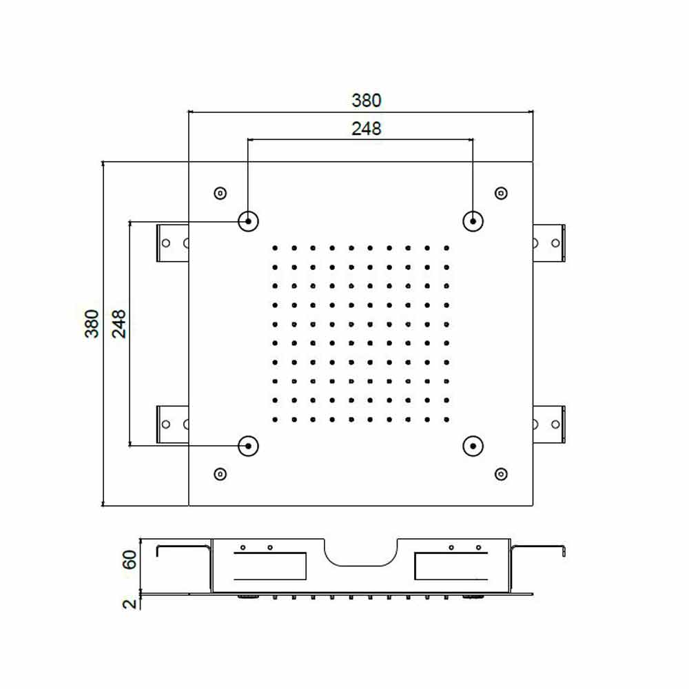 Cap de duș pătrat din oțel cu dublu jet, articol de design de înaltă calitate Made in Italy.