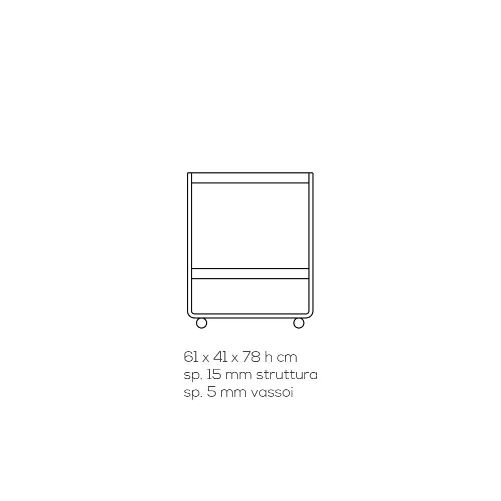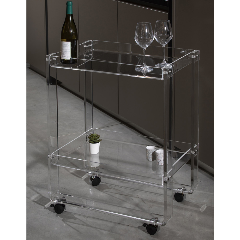 Cărucior din cristal acrilic transparent cu roți și 2 rafturi, fabricat în Italia.