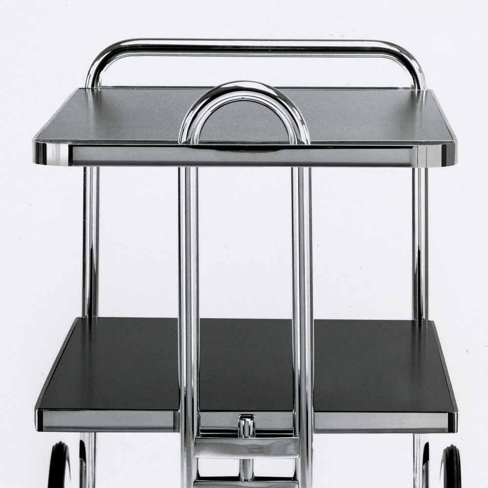 Cărucior alimentar din oțel cromat cu rafturi din laminat negru Fabricat în Italia.