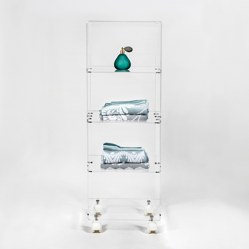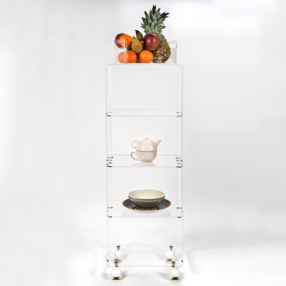 Fiecare raft al acestui cărucior este o etapă care pune în valoare ceea ce conține, datorită transparenței cristaline a plexiglasului de primă alegere. Materia primă, plexiglas 100% polimer virgin , asigură o strălucire și strălucire care rămân neschimbate în timp, un angajament față de calitate care poate fi văzută și simțită.