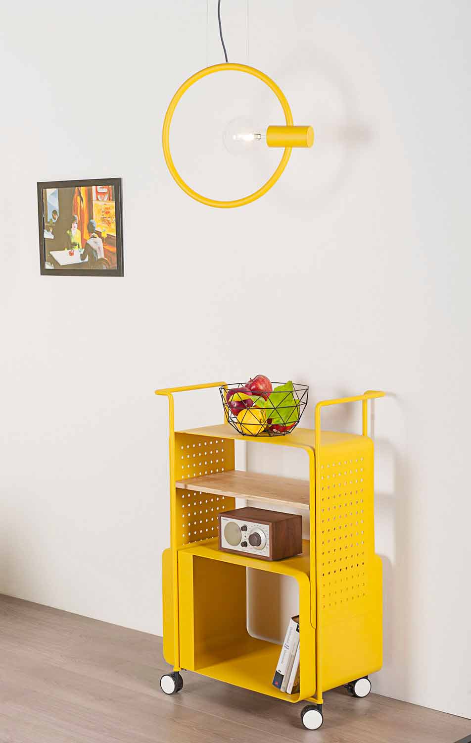 cărucior reprezintă un element deosebit de versatil, deoarece poate fi utilizat în diverse situații și medii, cum ar fi bucătăria, camera de zi sau chiar biroul. Datorită designului său tânăr și modern, este ideal pentru medii cu mobilier extravagant și neobișnuit, dar și pentru stiluri mai minime pentru a da culoare și personalitate.