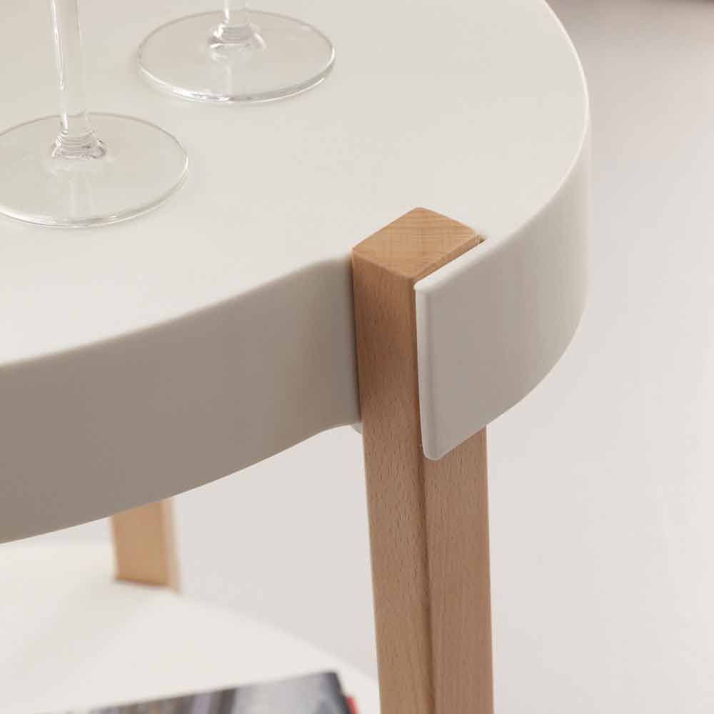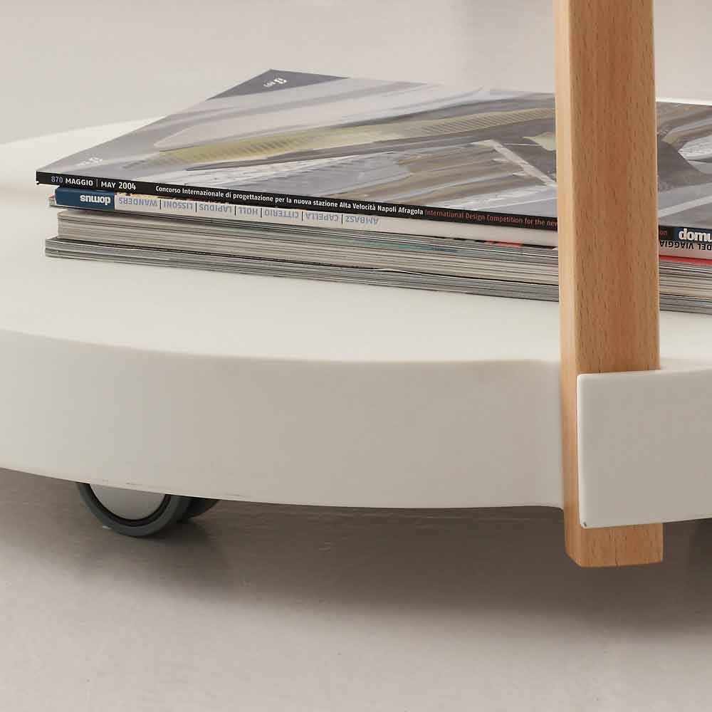 Acest cărucior este format dintr-o structură naturală de fag completată cu rafturi din polipropilenă cu finisaj alb.
