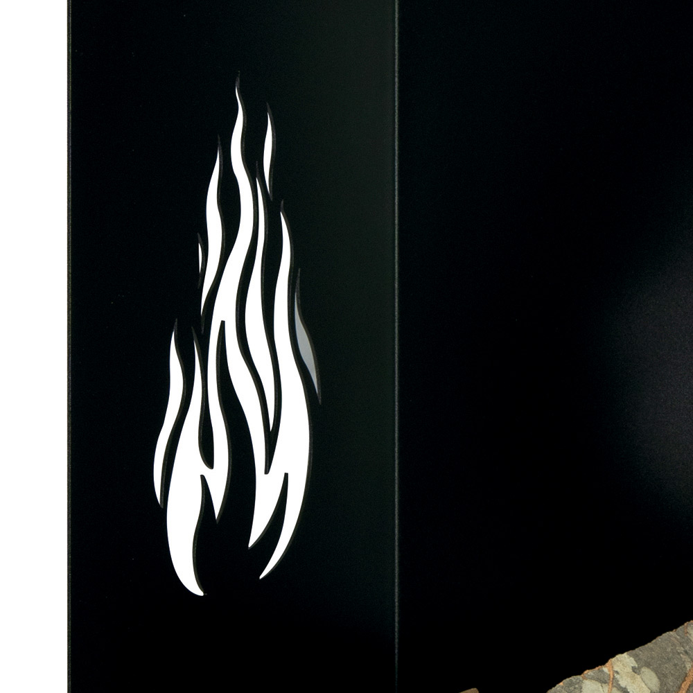 Finisajul metalic oferă un contrast elegant cu accentul cald de lemn al sertarului, care este ideal pentru depozitarea aprinderilor și ustensilelor. Roțile asigură că suportul pentru bușteni poate fi mutat cu ușurință, fără efort, chiar și atunci când este plin, permițându-vă să vă stocați șemineul în mod eficient și curat.