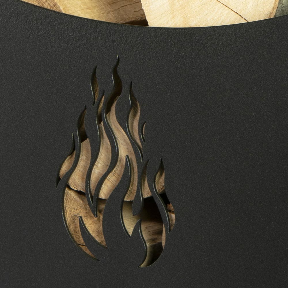 Construcția metalică robustă garantează durabilitate și stabilitate , în timp ce roțile rezistente și ușor de manevrat vă permit să mutați cu ușurință căruciorul oriunde în casă, de la depozitarea lemnelor până la șemineu. Tăiatul cu flacără pe față nu este doar un detaliu decorativ care evocă căldura și confortul focului, ci servește și la aerisirea și menținerea lemnului uscat.