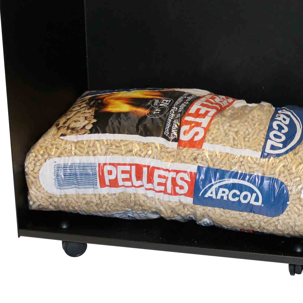 Acest cărucior pentru sac peleți este un obiect practic conceput pentru a facilita gestionarea și depozitarea combustibilului pentru șemineul sau soba dvs. pe peleți. Designul robust și finisajul negru se îmbină discret în orice mediu de acasă, oferind o estetică curată care nu compromite funcționalitatea.