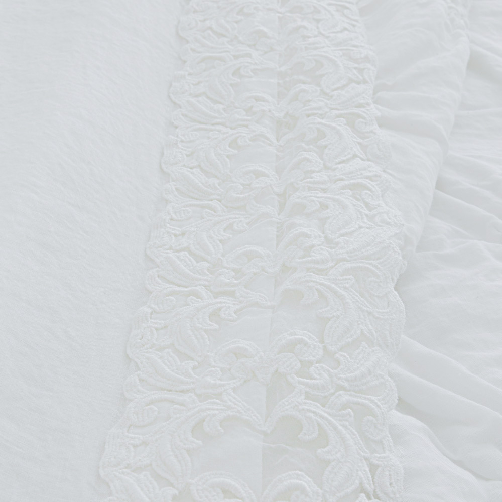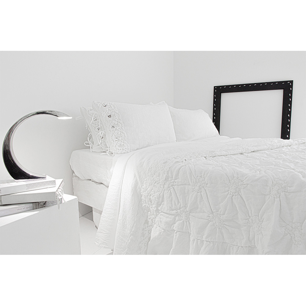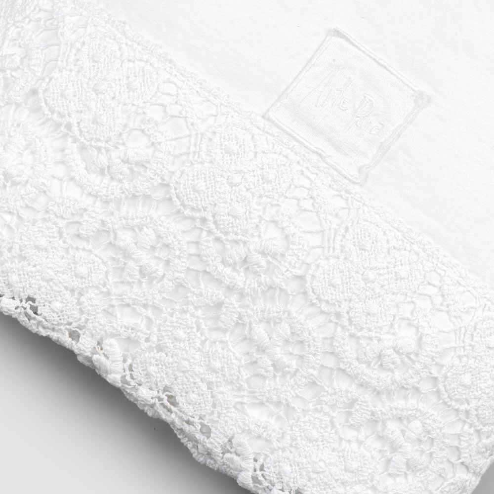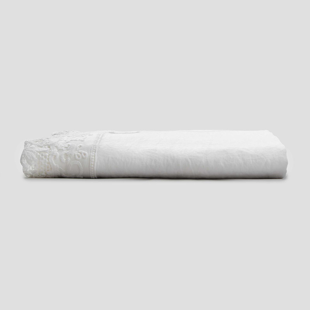 Cearșaf pentru pat dublu în lenjerie albă pură cu diferite tipuri de dantelă, măiestrie de design de lux realizată în Italia.