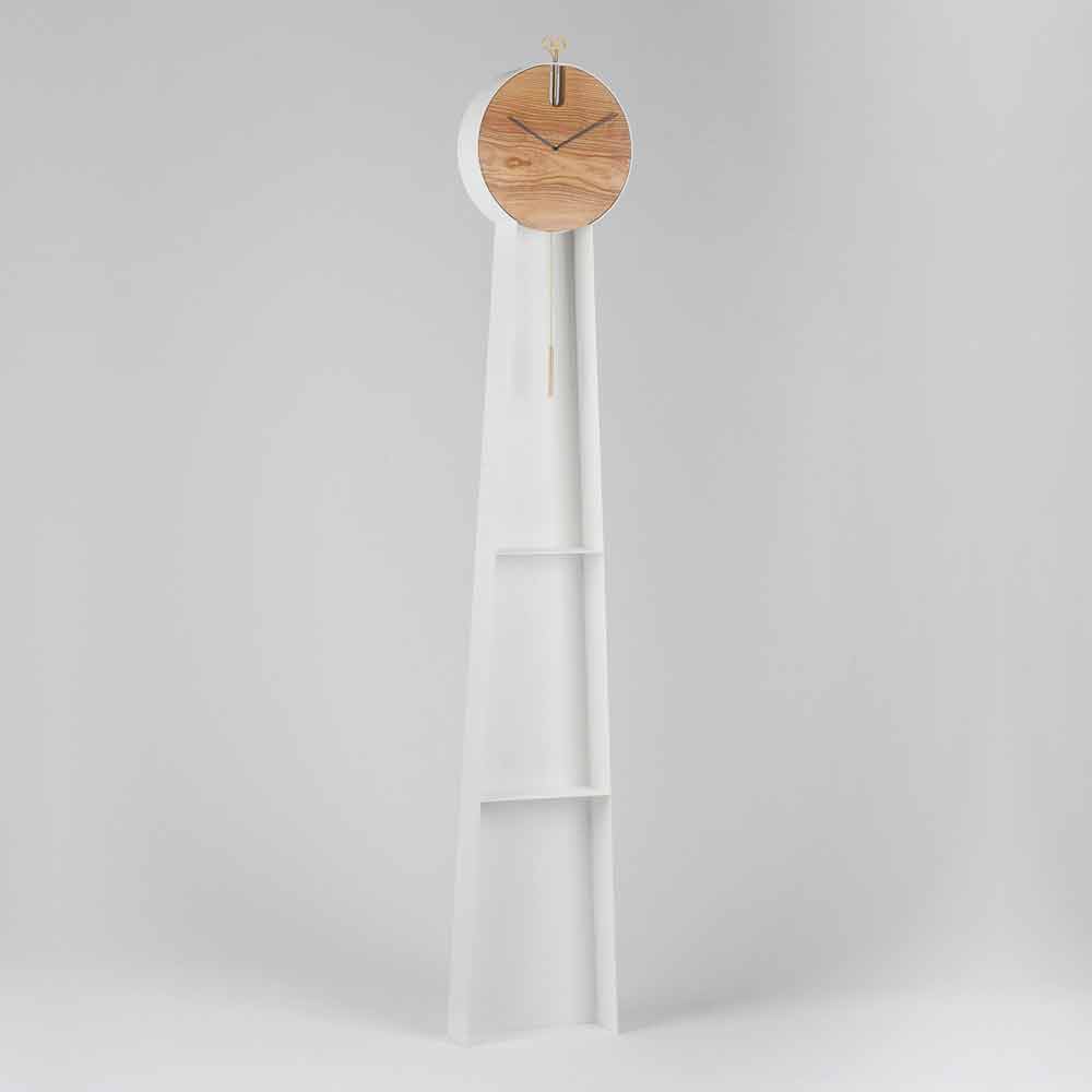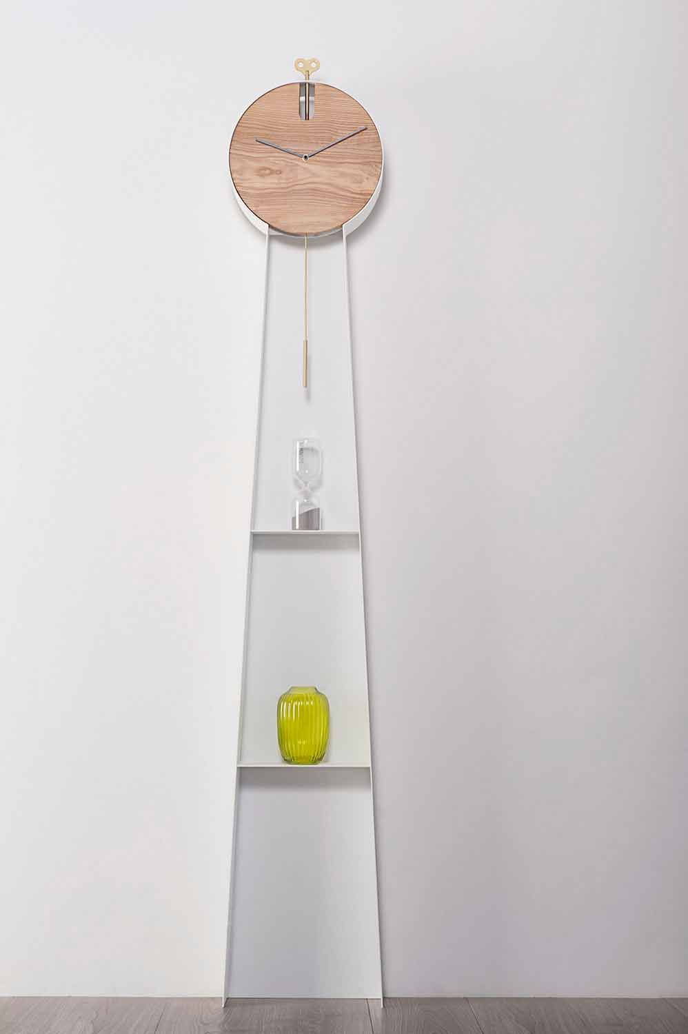 ceas cu podea de podea este un obiect inovator care combină un design inovator și extrem de modern cu o atingere mai clasică dată de cheia de înfășurare din alamă tipică ceasurilor pendulare vechi. Structura sa este