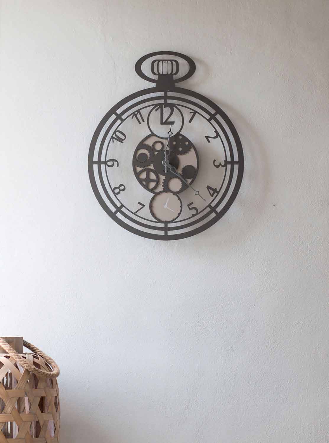 Ceas de perete cu design modern realizat manual în Italia din fier negru, aluminiu sau noroi.