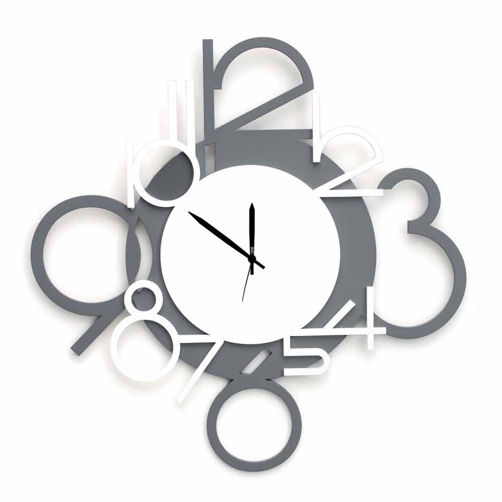 Ceas de perete cu design mare din lemn alb și gri, special realizat în Italia.