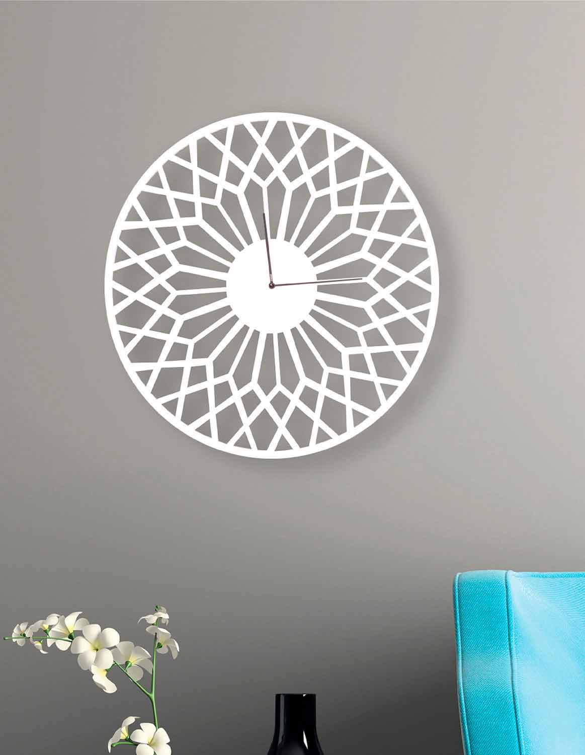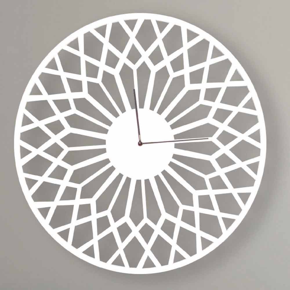 Ceas de perete cu design rotund mare, din lemn alb, roz sau broască țestoasă, fabricat în Italia.