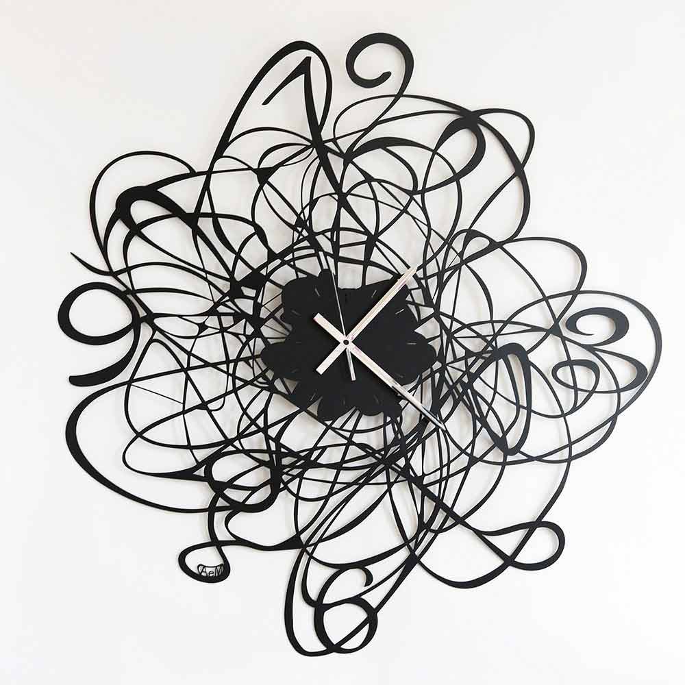 Ceas de perete cu design modern, din fier vopsit negru sau alb, realizat manual în Italia.