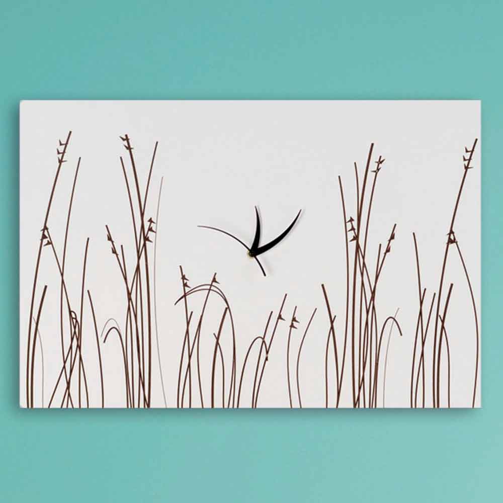 Ceas de perete dreptunghiular mare, cu design modern din lemn alb, realizat în Italia.