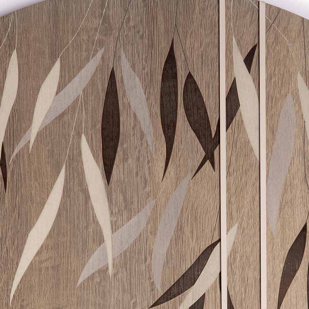 marcate cu laser și decorațiuni din lemn lăcuit care prezintă frunze de salcie în diferite nuanțe.