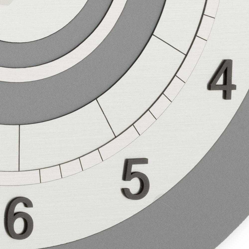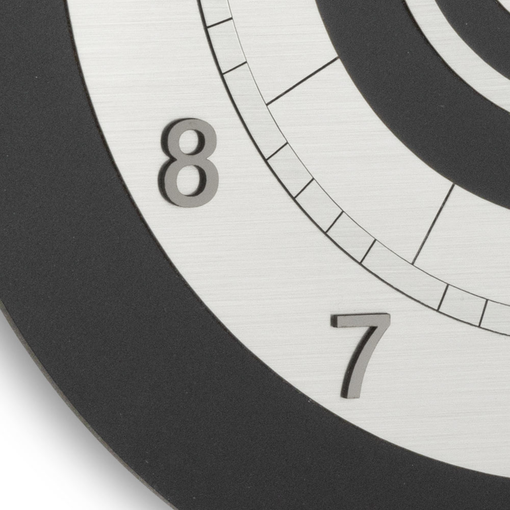 The frame embraces a dial with embossed, elegant and easily readable numerals. mâinile subtile și culorile contrastante creează un echilibru între modernitate și rafinament, perfect pentru setările contemporane, atât domestice, cât și profesionale.