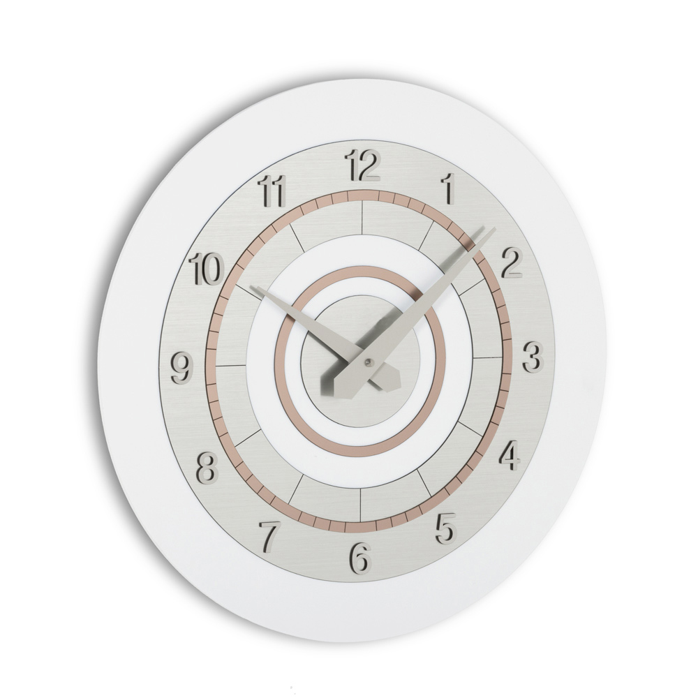 Un amestec perfect de design grafic și funcționalitate, acest ceas de perete realizat din PVC semiespansat de înaltă densitate è o adevărată atracție pentru cei cărora le place să decoreze cu personalitate. Interacțiunea dintre cercuri concentrice creează un efect vizual hipnotic și dinamic care captează imediat'atenția, transformând peretele într-o adevărată operă de artă.