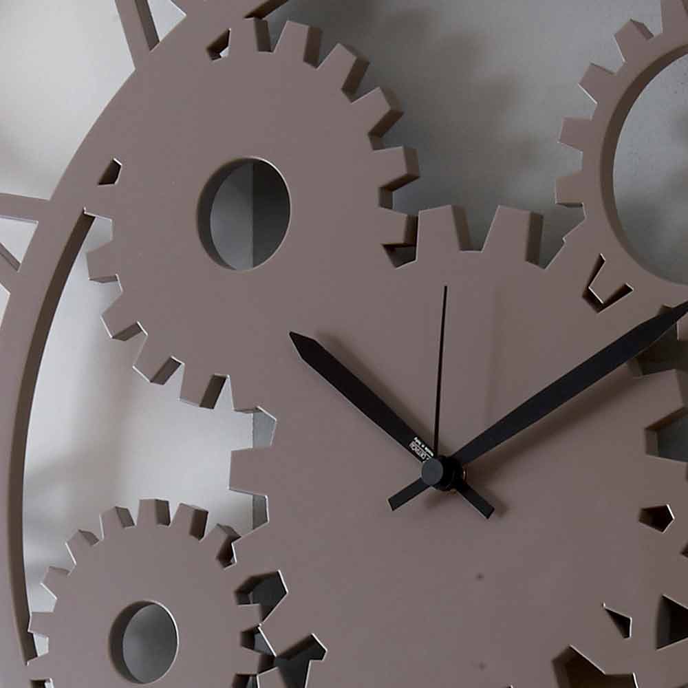 Ceas de perete mare în stil ponos, design rotund în alb, gri sau lemn taupe, realizat în Italia.