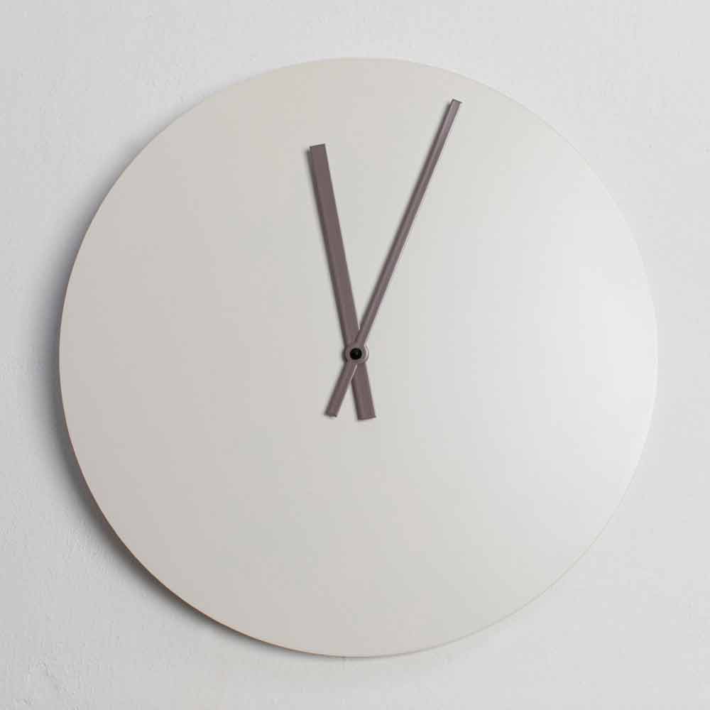 Ceas de perete din nisip și lemn lacat cu cacao, cu un design modern și rotund realizat în Italia.