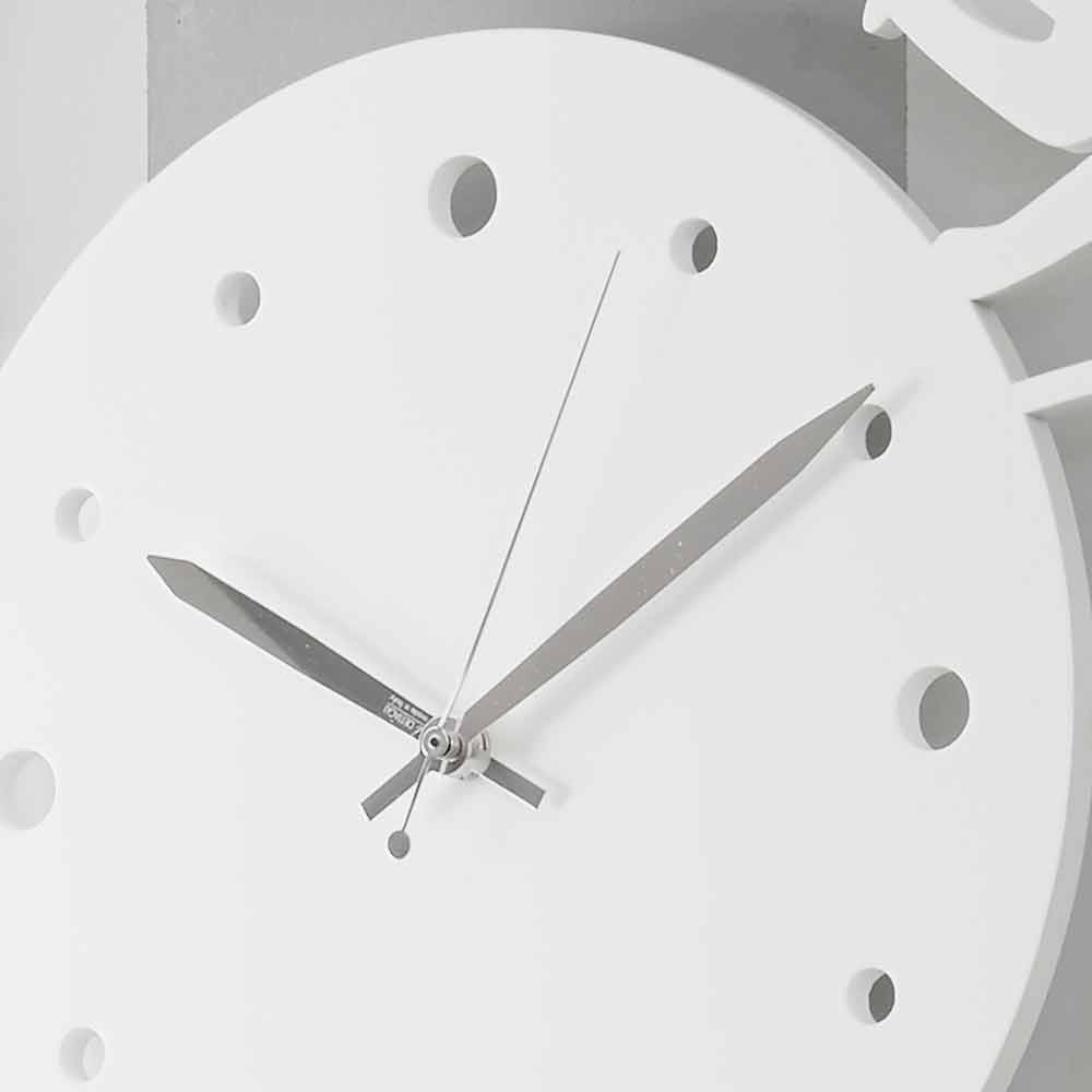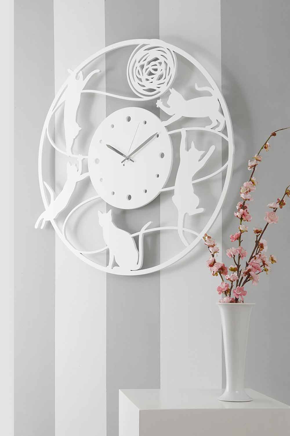 Ceas de perete mare și original, cu un design rotund modern, din lemn alb, negru sau gri, cu pisoi, realizat în Italia.