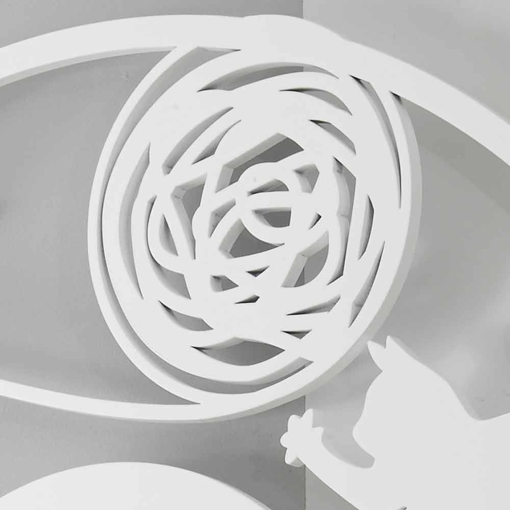 perete rotund care înfățișează pisicile care se joacă cu o minge de fire.
