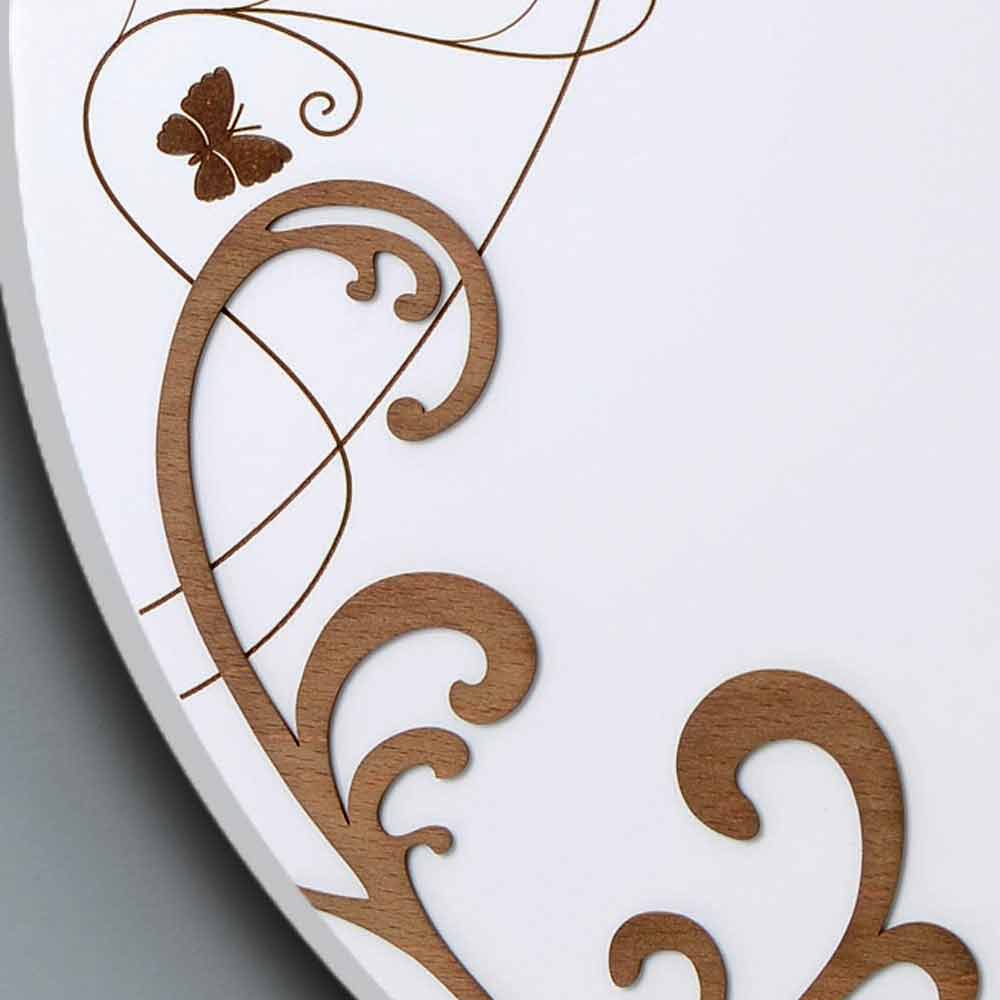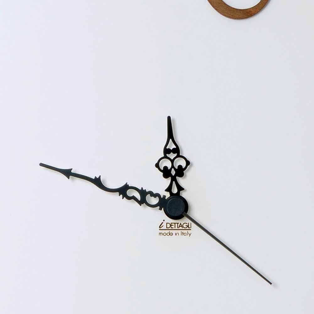 Ceas de perete rotund cu design modern, din lemn decorat, fabricat in Italia.