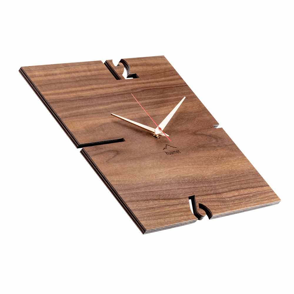 Ceas de perete modern pătrat din stejar, pin sau nuc; lucrate manual în Italia.