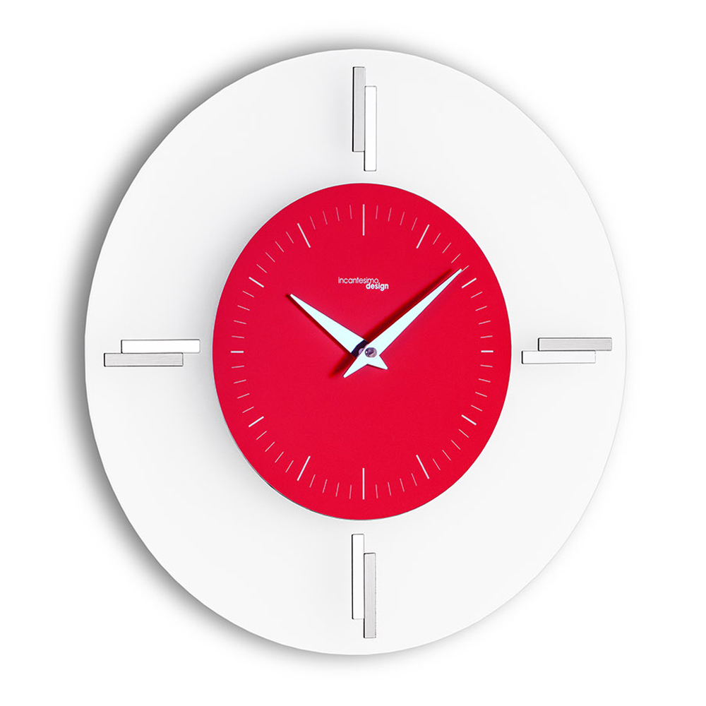 Ceas de perete rotund din metacrilat și aluminiu, fabricat în Italia.