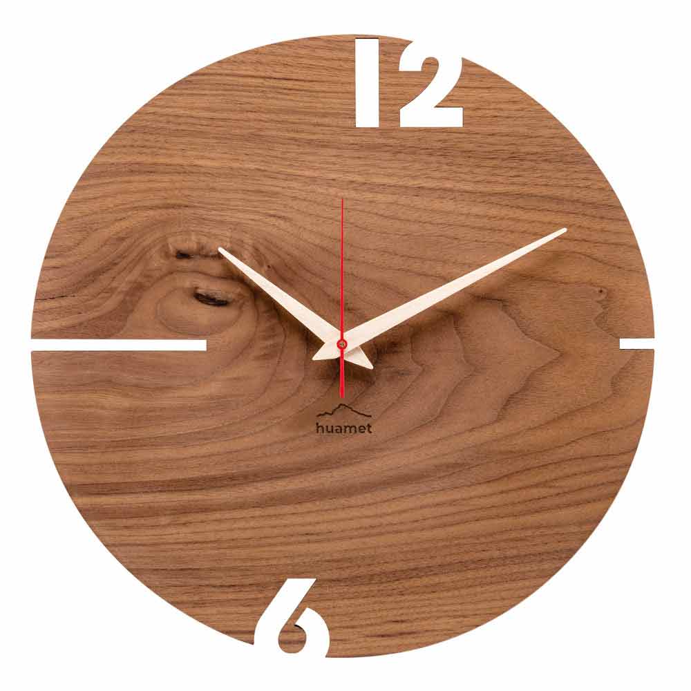 Ceas de perete rotund cu design modern din stejar, pin sau nuc; lucrate manual în Italia.