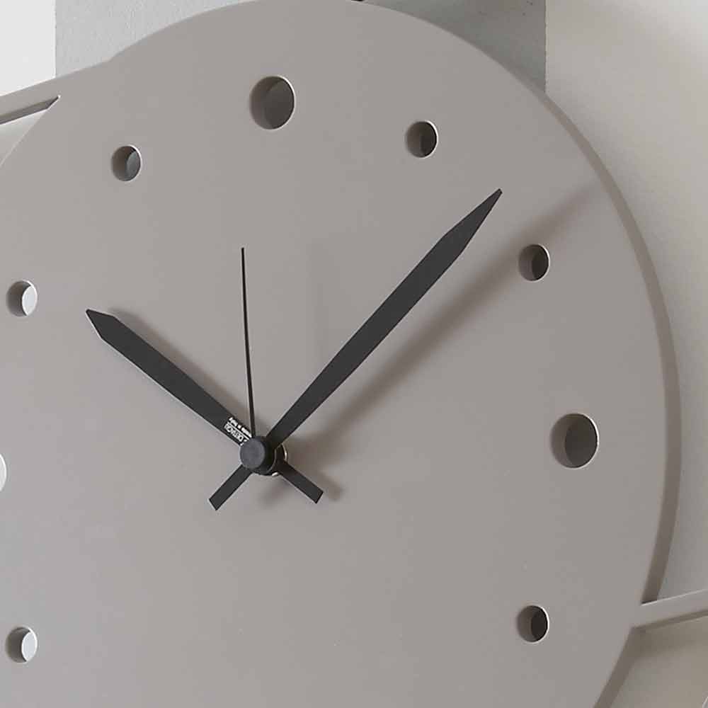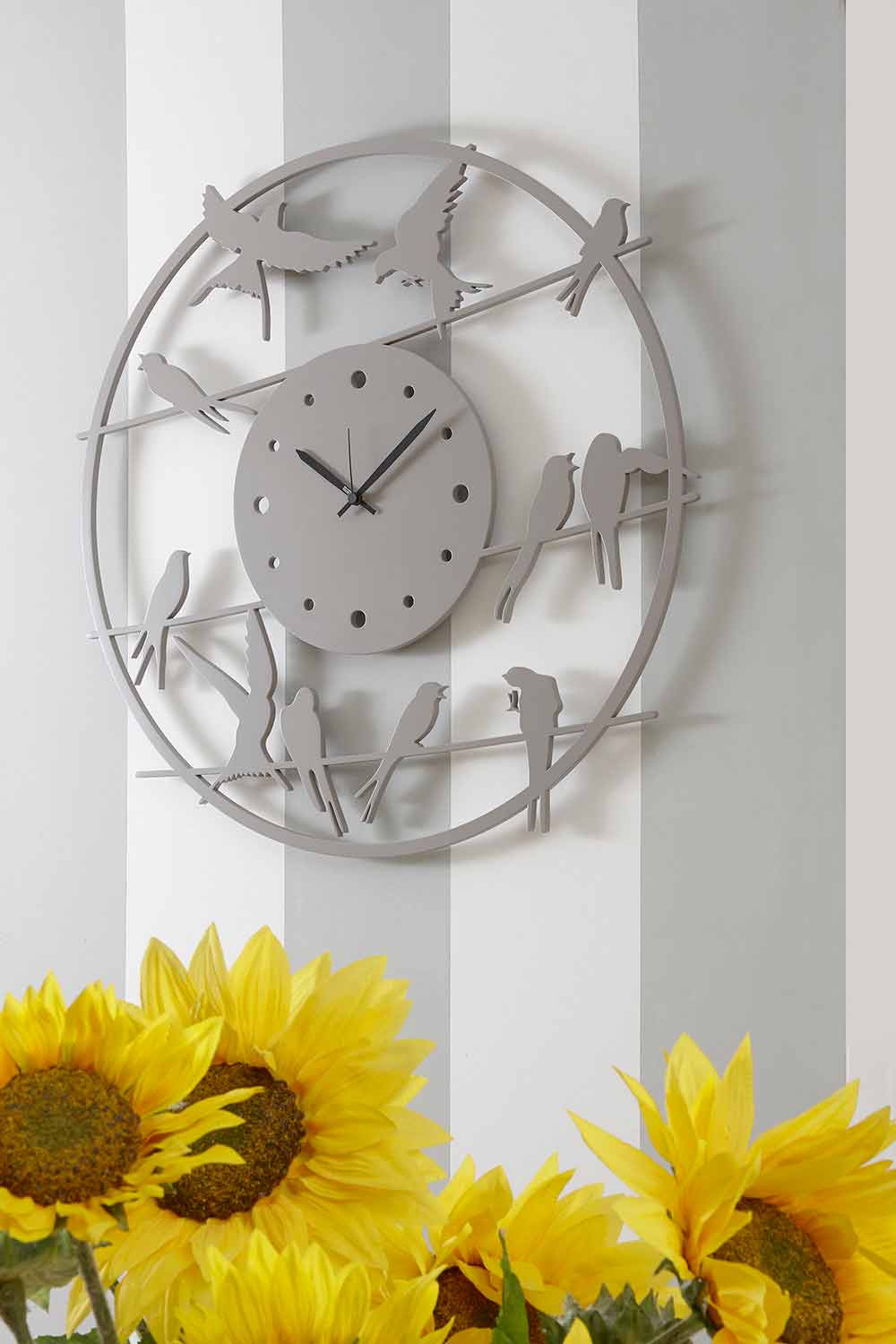 Ceas de perete mare și original, design rotund și modern cu păsări, din lemn alb, taupe sau gri, realizat în Italia.