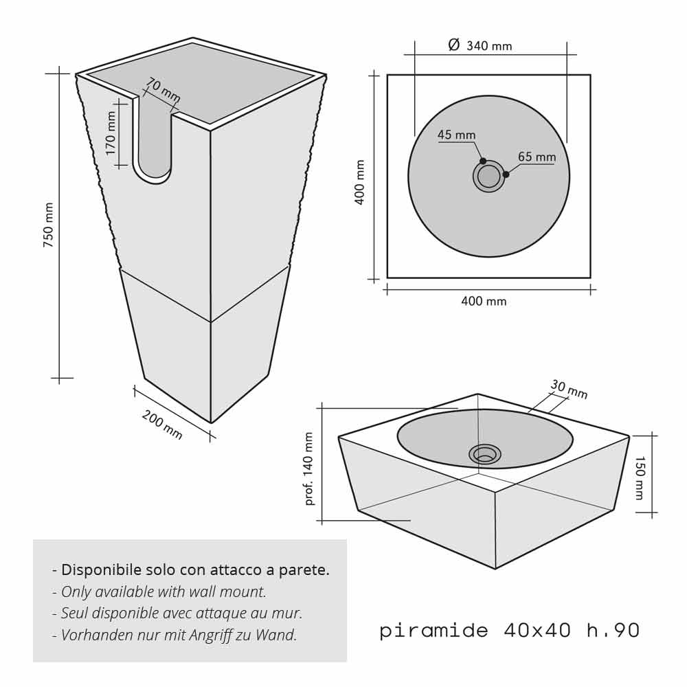 Chiuvetă inversat coloană în formă de piramidă, în modelul Nias negru piatra naturala.